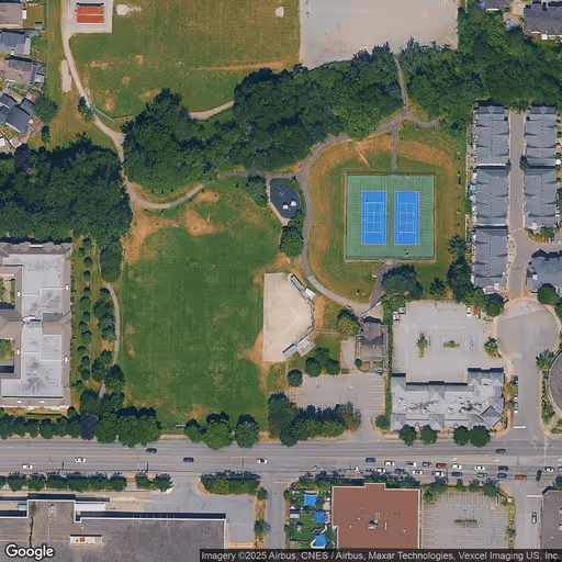 At Langley Meadows Park, you'll find the tennis courts tucked right between 199 St and Willoughby Elementary School - you can't miss them! They're an easy spot to find, just off the main park area.